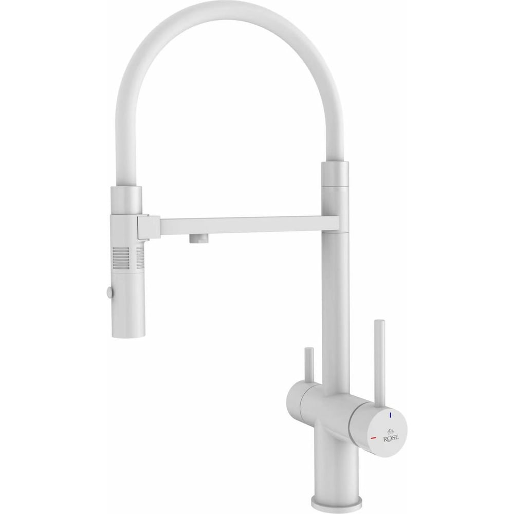 Смеситель для кухни с гибким изливом и подключением фильтра Rose — это современная модель, выполненная в стиле хай-тек. Она отличается оригинальным дизайном и высоким качеством исполнения.