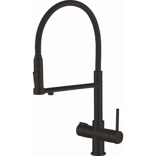 Этот смеситель отличается не только своей функциональностью, но и стильным дизайном. Матовая черная поверхность делает его элегантным акцентом кухонного интерьера. Дополнительно комплектуется аэратором, набором крепежа и гибкой подводкой.