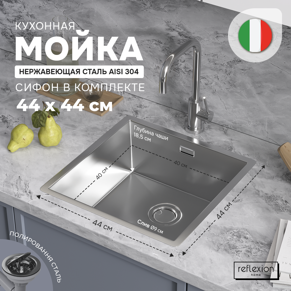 Мойка кухонная Reflexion Como полированная сталь RX2044SS