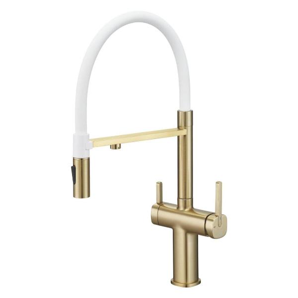 Смеситель для кухонной мойки Rose золотой сатин с подключением фильтра для воды R358G