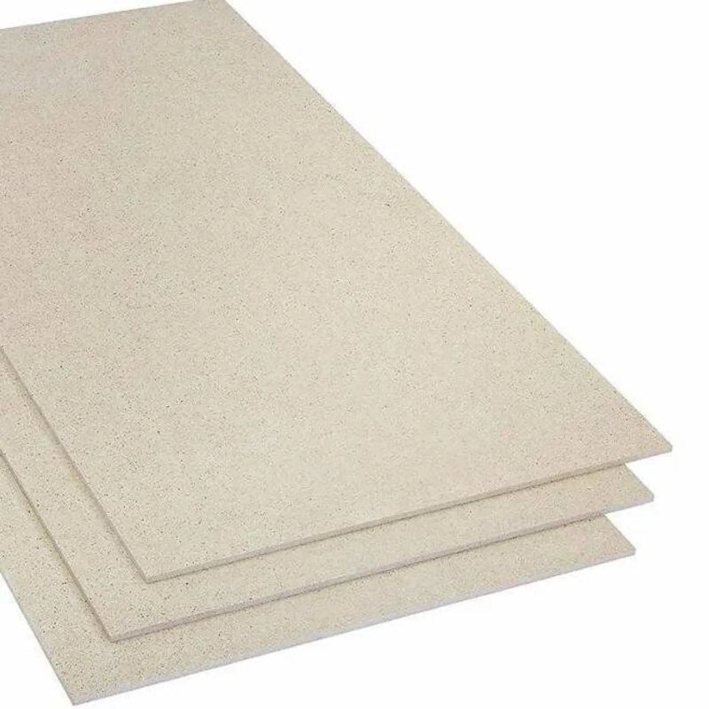 **Плита фиброцементная** с прямой кромкой относится к категории негорючих материалов и выдерживает непрерывное воздействие высоких температур до 150°С. Прессованный материал на основе цемента, известкового наполнителя и армирующих волокон обладает высокой механической прочностью, влагостойкостью, жесткостью на изгиб, хорошо сочетается с бетоном, штукатуркой, стеклом, кирпичом и другими видами отделки. Применение — экранирование каминов, печей в саунах, возведение огнестойких перегородок, зонирование помещений во время реконструкции и ремонта. Возможна фиксация плит к направляющим или напрямую к предварительно выровненной стене. Допускается последующее окрашивание или иная финишная отделка.