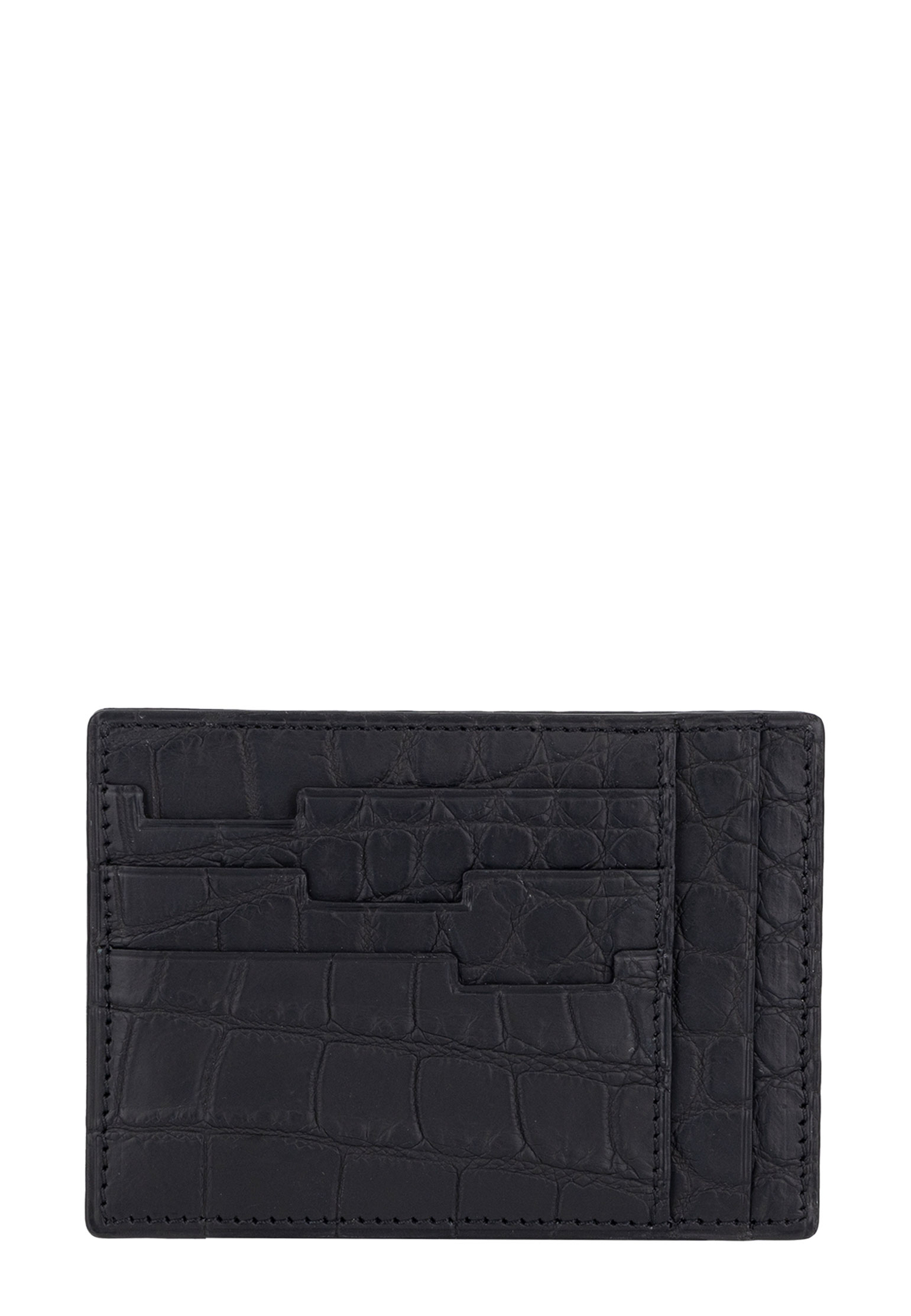 Визитница выполнена из высококачественной кожи крокодила итальянского производства чёрного цвета. Модель отличается наличием 10 слотов для банковских карт и одним карманом для купюр. Классический дизайн подчеркивает благородный цвет и уникальный рисунок кожи. Габариты: Длина 12 см, высота 8.5 см