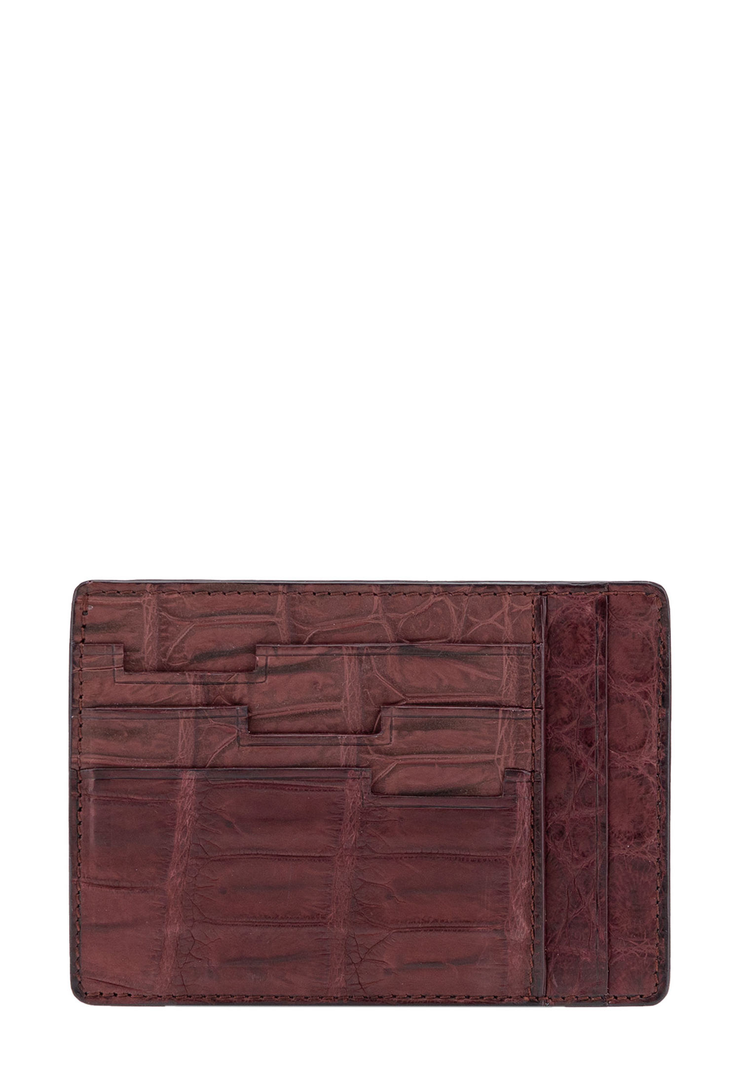 Визитница выполнена из высококачественной кожи крокодила итальянского производства бордового цвета. Модель отличается наличием 10 слотов для банковских карт и одним карманом для купюр. Классический дизайн подчеркивает благородный цвет и уникальный рисунок кожи. Габариты: Длина 12 см, высота 8.5 см