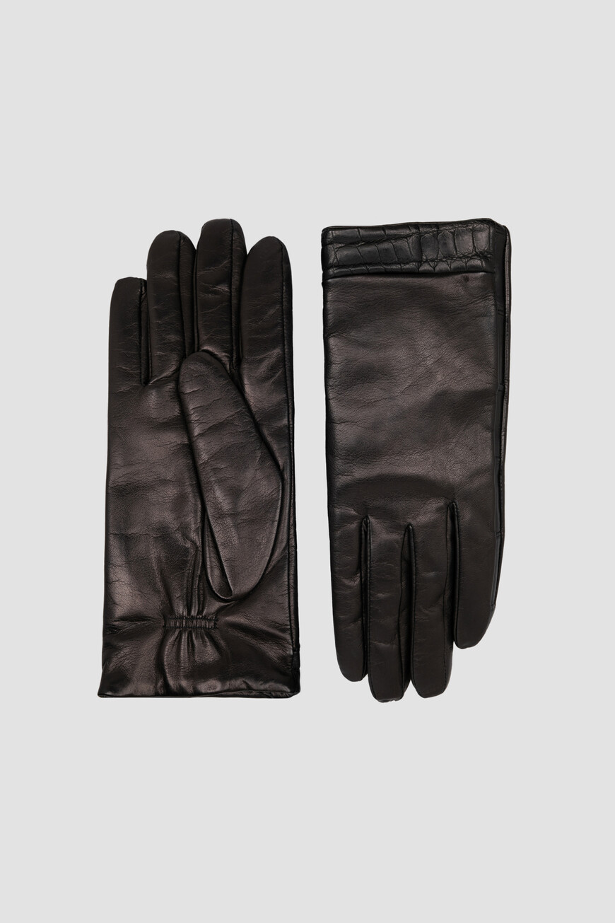 Кожаные перчатки Bardini станут неотъемлемой частью Вашего образа. Классический чёрный аксессуар с гладкой текстурой декорирован вставками из фактурной кожи крокодила на тыльной стороне и боковинах. Материалы исключительно бережной выделки слегка тянутся, поэтому изделие плотно облегает кисть.