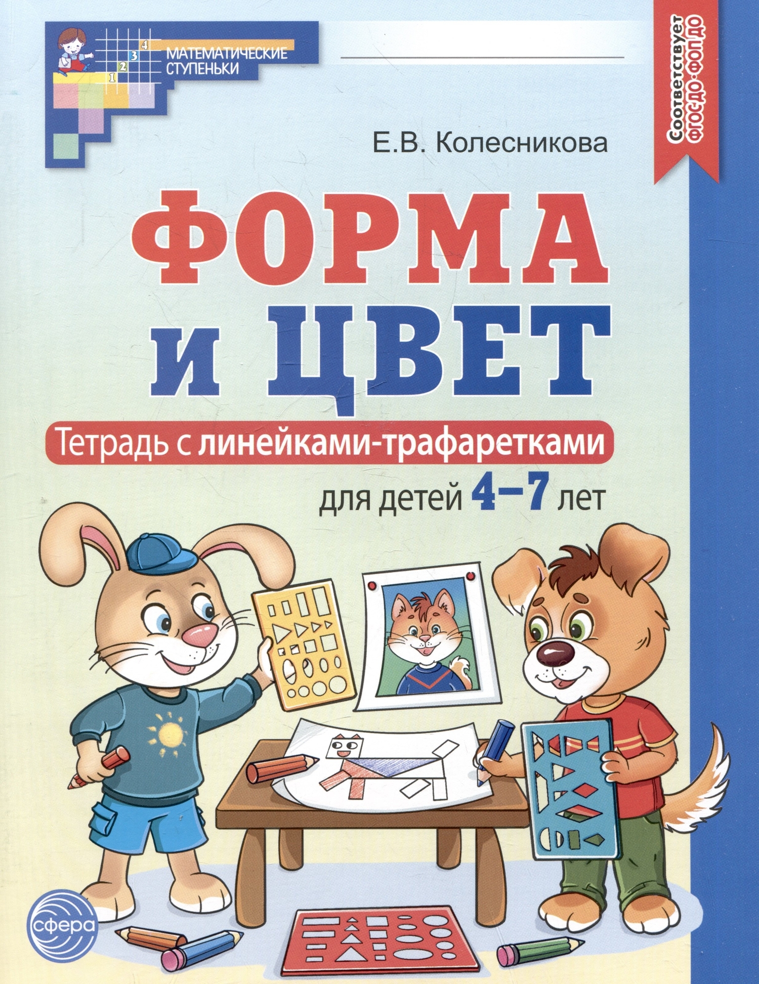 Тетрадь «Форма и цвет» входит в дополнительный комплект ОМС технологии «Математические ступеньки» и предназначена для совместной работы взрослого с ребёнком 4–7 лет. Пособие уникально, поскольку дополнено двумя авторскими линейками-трафаретками, с помощью которых ребёнок научится рисовать геометрические фигуры и символические изображения предметов окружающего мира. Задания в тетради располагаются в определённой последовательности. Выполнение заданий в тетради способствует развитию мелкой моторики и графических навыков ребёнка, закреплению знаний об основных цветах и геометрических фигурах, развитию зрительного внимания, памяти, воображения. В издании учтены требования ФГОС ДО и ФОП ДО. Рекомендуется педагогам ДОО, родителям, гувернёрам.