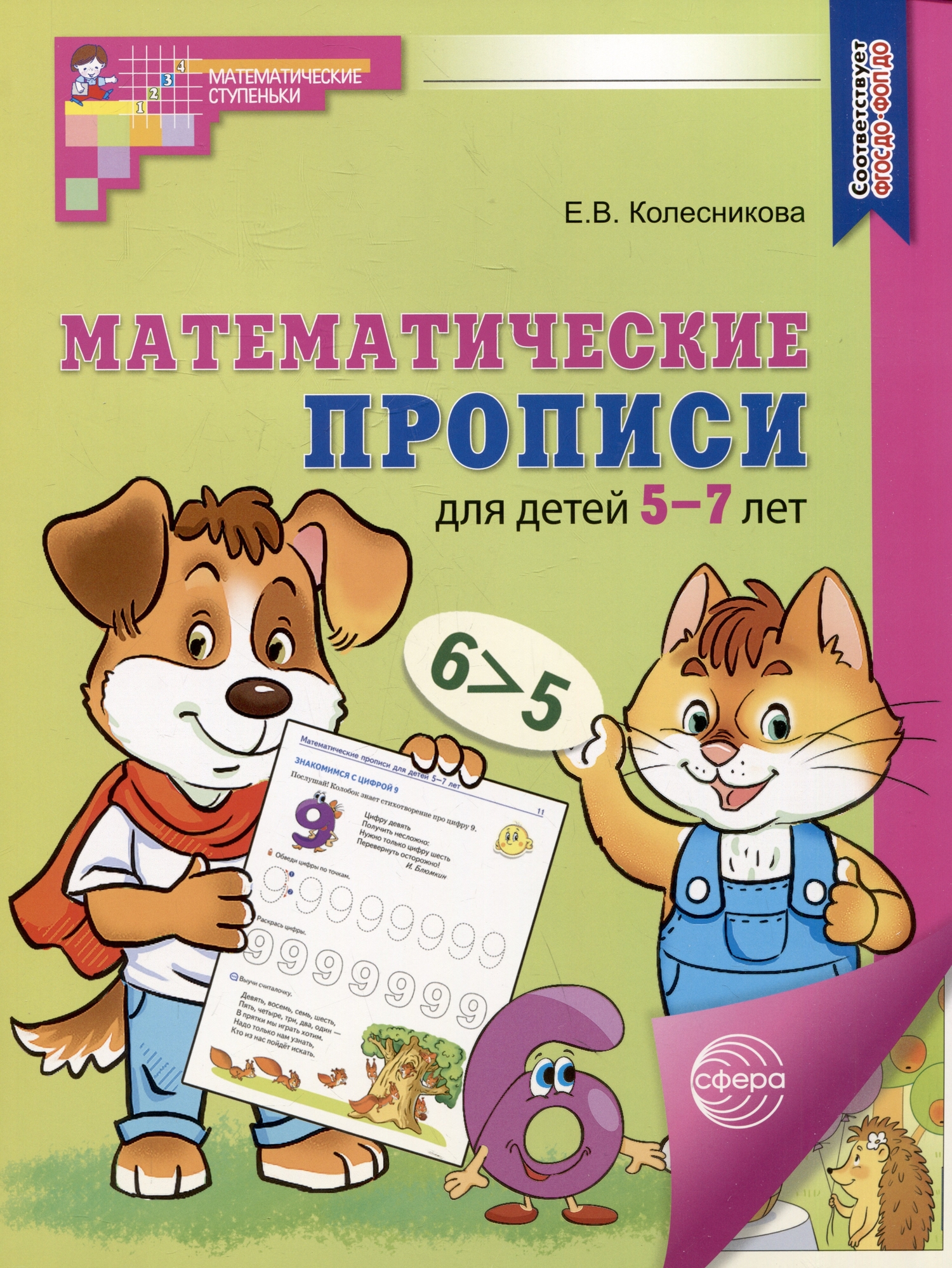 Математические прописи входят в дополнительный комплект организационно-методического сопровождения парциальной образовательной программы «Математические ступеньки» и предназначены для совместной работы взрослого с ребенком. Предложенные в прописях задания помогут подготовить руку ребенка к письму, закрепить полученные ранее знания, умения и навыки, а также применить их для выполнения более сложных упражнений: письмо цифр, математических знаков, геометрических фигур в тетради в клетку, рисование символических изображений предметов и так . В процессе выполнения заданий веселого Колобка и его друзей-карандашей у ребенка развиваются внимание, память, мышление - качества, необходимые для обучения в школе. Выполнение заданий в тетради решает одну из задач современного обучения - формирование предпосылок учебной деятельности, к которым относятся: понимание предложенной задачи; умение самостоятельно ее выполнить; проведение самоконтроля и самооценки выполненной работы.