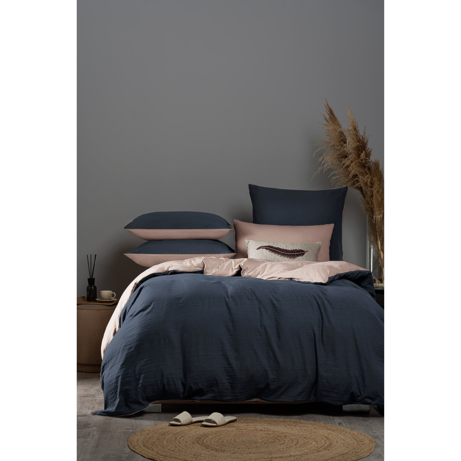 Комплект постельного белья Sleepix Юко темно-синий/розовый полуторный
