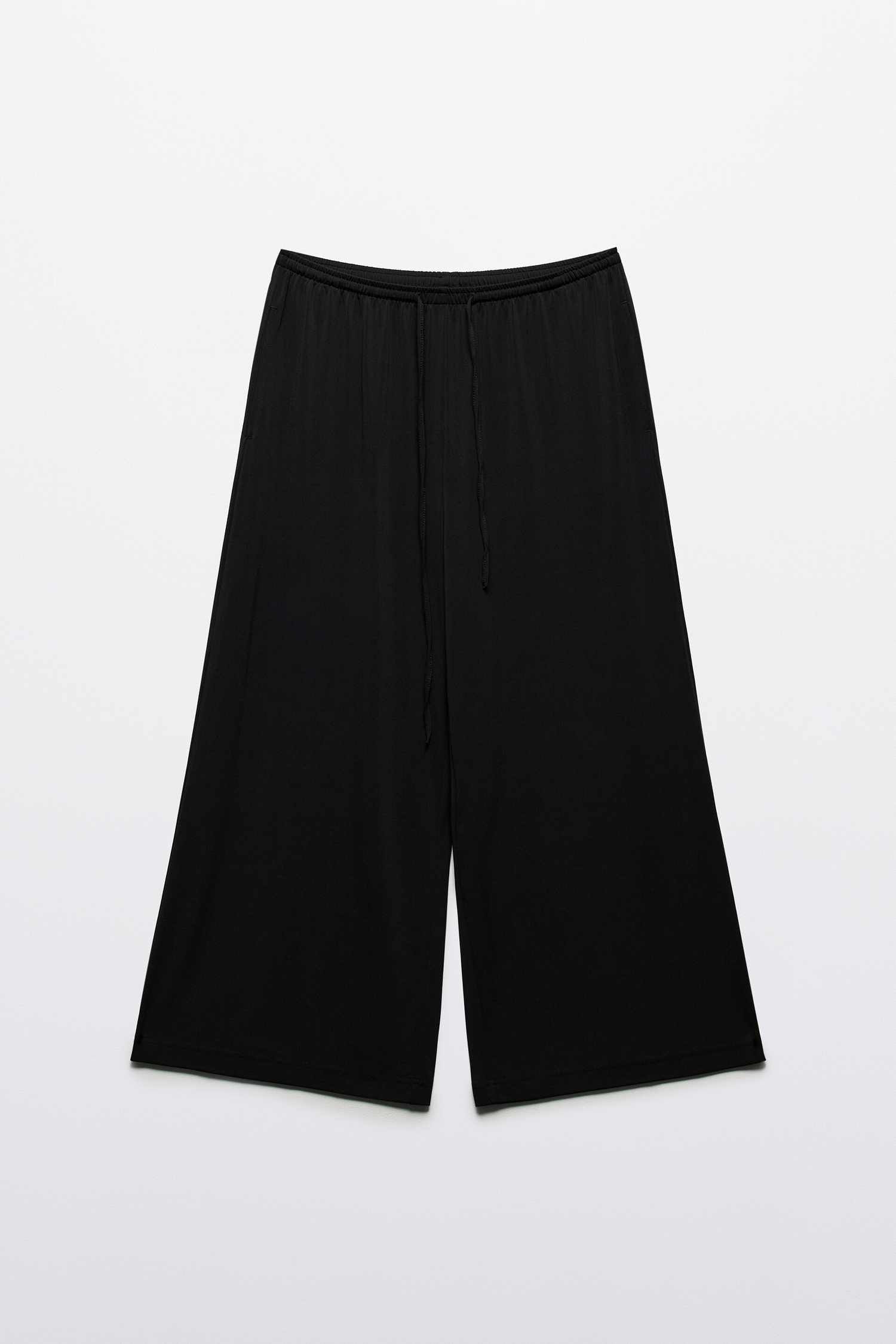 - Укороченные женские брюки-кюлоты широкого кроя из мягкой и очень приятной к телу трикотажной ткани