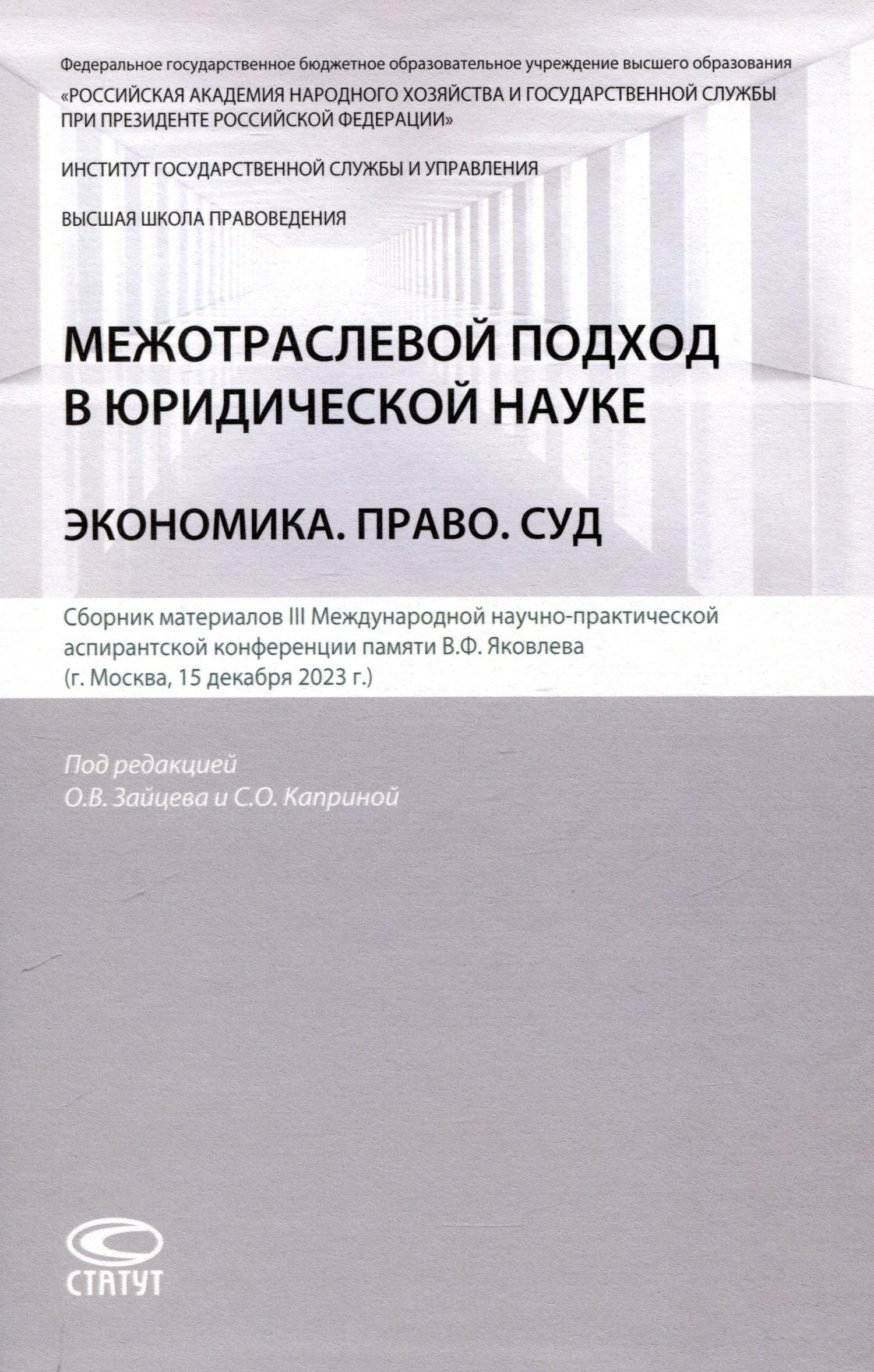 Межотраслевой подход в юридической науке: Экономика. Право. Суд: сборник материалов III Международной научно-практической аспирантской конференции памяти В.Ф. Яковлева (г. Москва, 15 декабря 2023 г.); Статут, 2025