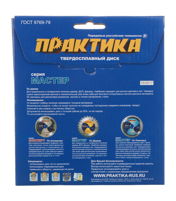 Пильный диск по дереву и ДСП. ГОСТ 9769-79. Серия "Мастер". Высококачественный пильный диск для ручных дисковых пил и станков. Твердость тела HRC 45-46, напаек из карбида вольфрама. Угол атаки зуба + 15°.