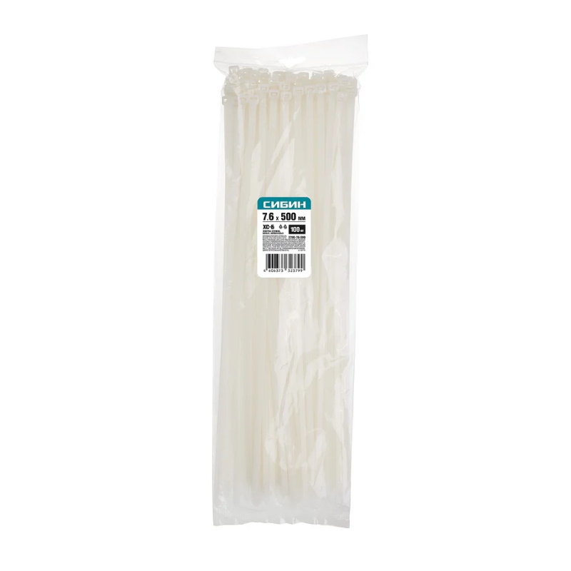 Хомуты-стяжки Сибин белые, 7.6х500мм, 100шт ХС-Б 3786-76-500