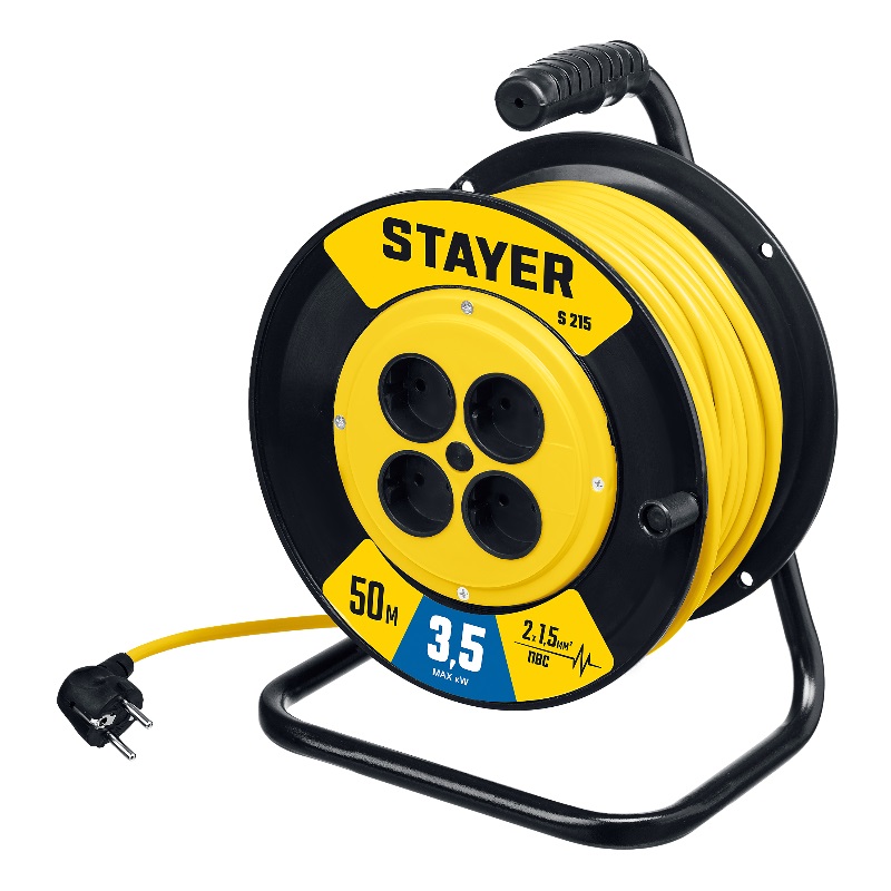 Удлинитель силовой на катушке Stayer , ПВС, 2х1.5, 50 м, 3500 Вт S 215 55072-50