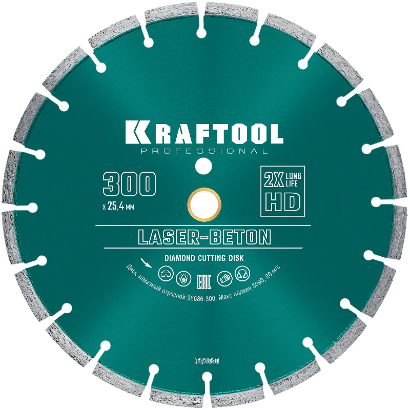 Алмазный диск Kraftool Laser-Beton , 300 мм (25.4/20 мм, 10х3.2 мм ) 36686-300