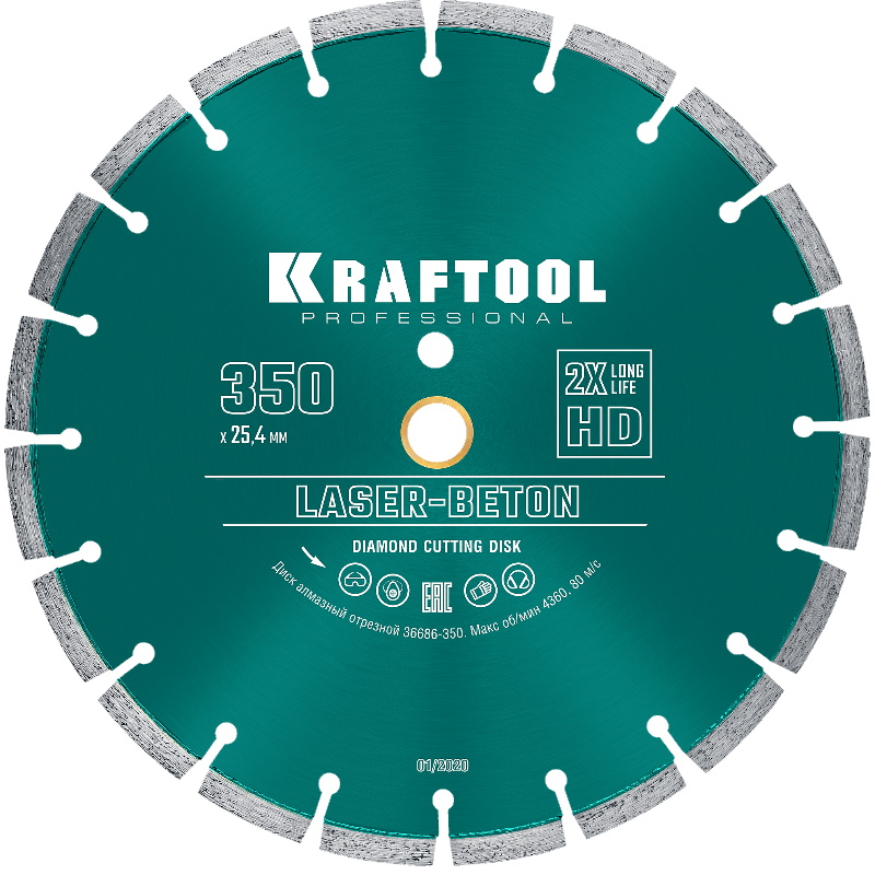 Алмазный диск Kraftool Laser-Beton 0, 350 мм (25.4/20 мм, 10х3.2 мм) 36686-35