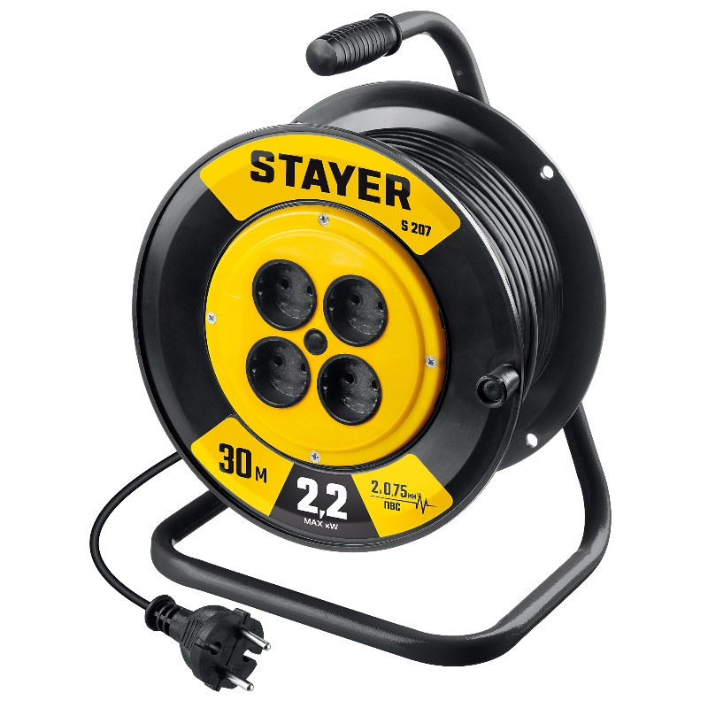Удлинитель на катушке Stayer S-207 , ПВС, 2 х 0.75 мм2, 30 м, 2200 Вт 55073-30