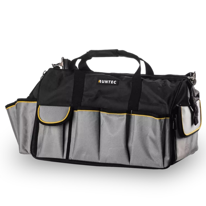 Сумка для инструмента Runtec подходит для переноса и хранения инструмента, строительных принадлежностей и средств индивидуальной защиты.Преимущества: Открытые и закрытые внешние карманы, а также большой отсек с внутренними карманами и держателями позволяют удобно и аккуратно разместить весь необходимый инструмент Изготовлена из прочного полиэфирного влагонепроницаемого материала 1680D Экологически чистый безопасный материал сумки не содержит токсичных веществ Дно сумки не деформируется во время переноски благодаря жесткой вставке Ножки предохранят сумку от намокания и грязи Молния сумки позволяет широко открывать ее по всей длине для удобства доступа На ручках сумки предусмотрена мягкая накладка для удобства переноски, а также комплектуется плечевым ремнем