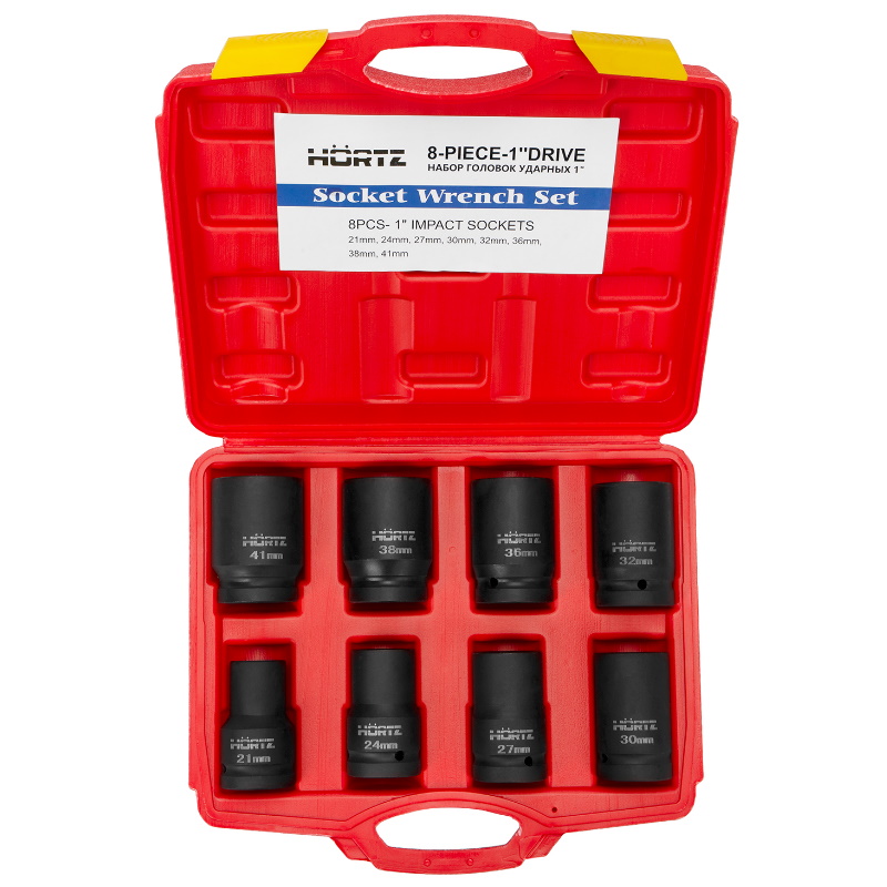Набор головок ударных Hortz , 1", 21,24,27,30,32,36,38,41 мм 128290