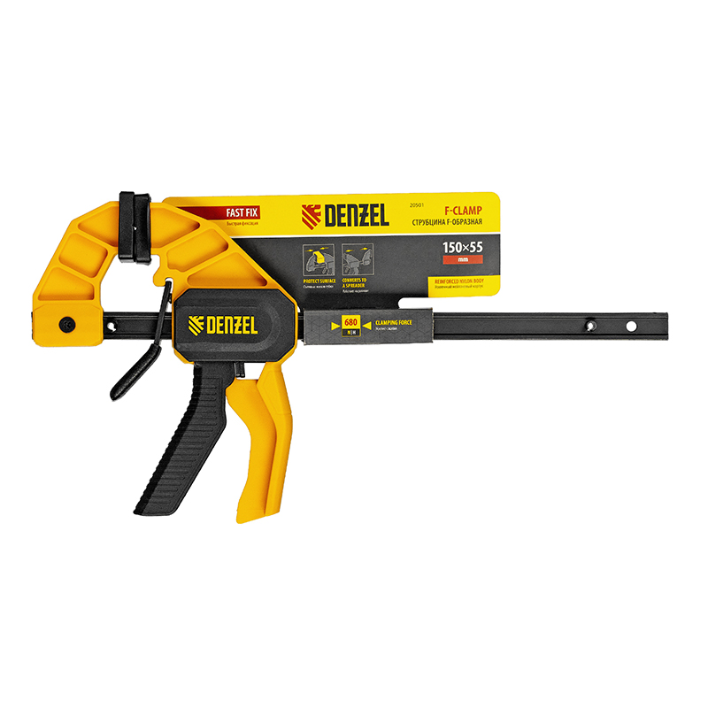 Струбцина F-образная Denzel, , быстрозажимная, усиленный нейлоновый корпус (150х55мм) 20501