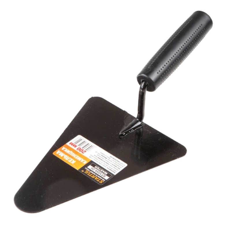 Кельма каменщика Startul предназначена для набрасывания и разравнивания растворов. Треугольная форма инструмента позволяет дозировать и разравнивать смесь в труднодоступных участках кладки. Полотно изготовлено из высокоуглеродистой стали, что гарантирует прочность и износостойкость инструмента.Преимущества Эргономичная рукоять хорошо лежит в руке и не выскальзывает во время работы Легкий вес, что облегчает работу, повышается точность и аккуратность выполнения задач Надежность и долговечность