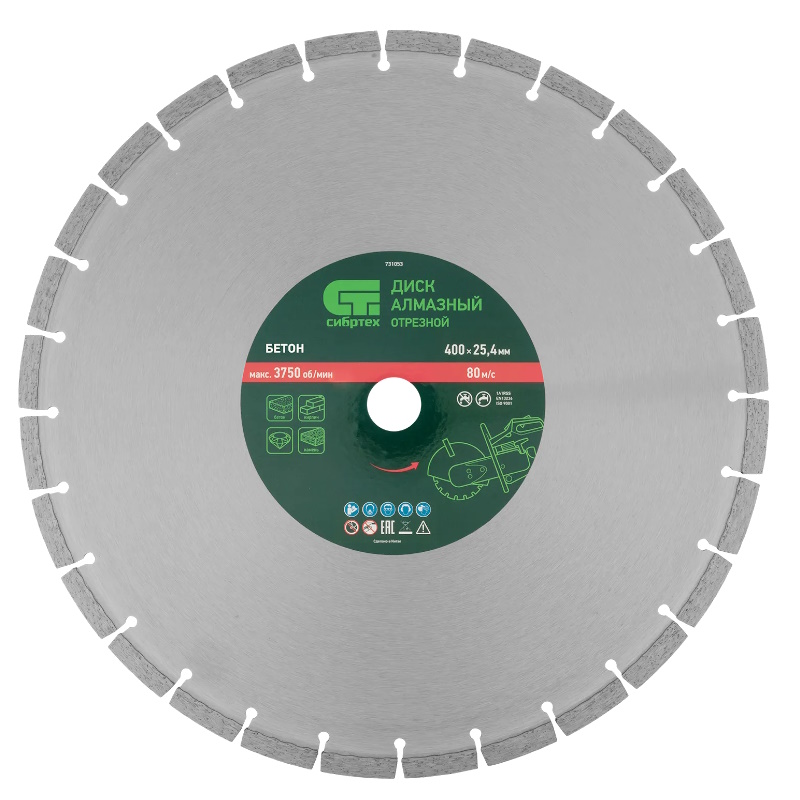 Диск алмазный Сибртех , ф400 х 25,4 мм, сухой/мокрый рез "Бетон" 731053