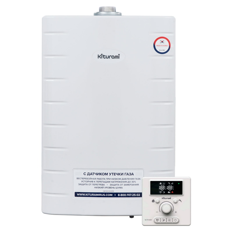 Котел газовый Kiturami НС-1500741 — это современное отопительное оборудование, которое отлично подойдет для обеспечения отопления в жилых домах, а также коммерческих и административных зданиях.Преимущества Встроенный сейсмодатчик блокирует подачу газа в случае сейсмической активности и защищает от неправильного монтажа. Идеально подходит для регионов с повышенной сейсмической активностью Пластинчатый теплообменник ГВС обеспечивает точную регулировку температуры горячей воды, даже при изменяющемся расходе воды Двухъярусная конструкция теплообменника гарантирует максимальную эффективность и долговечность Обширная система безопасности гарантирует надежную работу котла на протяжении всего срока службы Выносной пульт управления позволяет установить его в любом удобном месте и управлять котлом удаленно