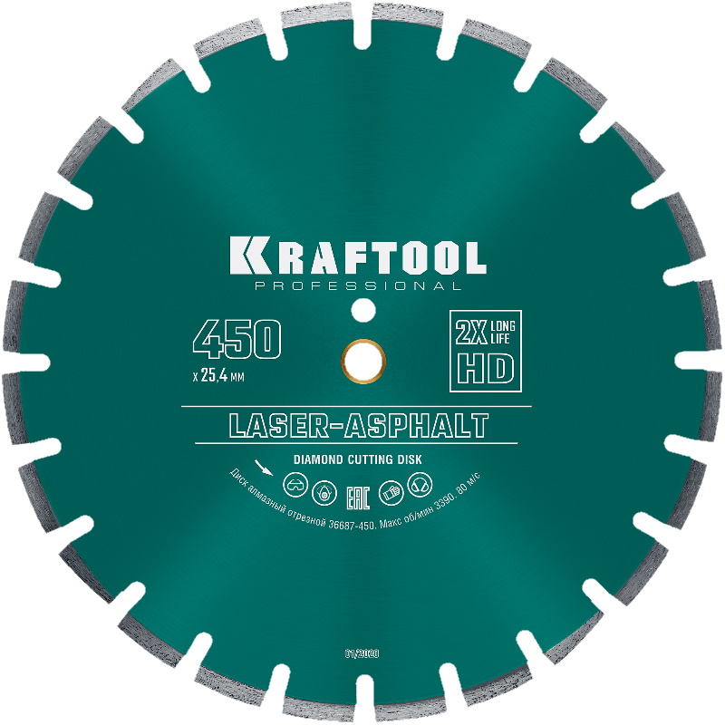 Алмазный диск Kraftool Laser-Asphalt , 450 мм (25.4/20 мм, 10х4.0 мм) 36687-450