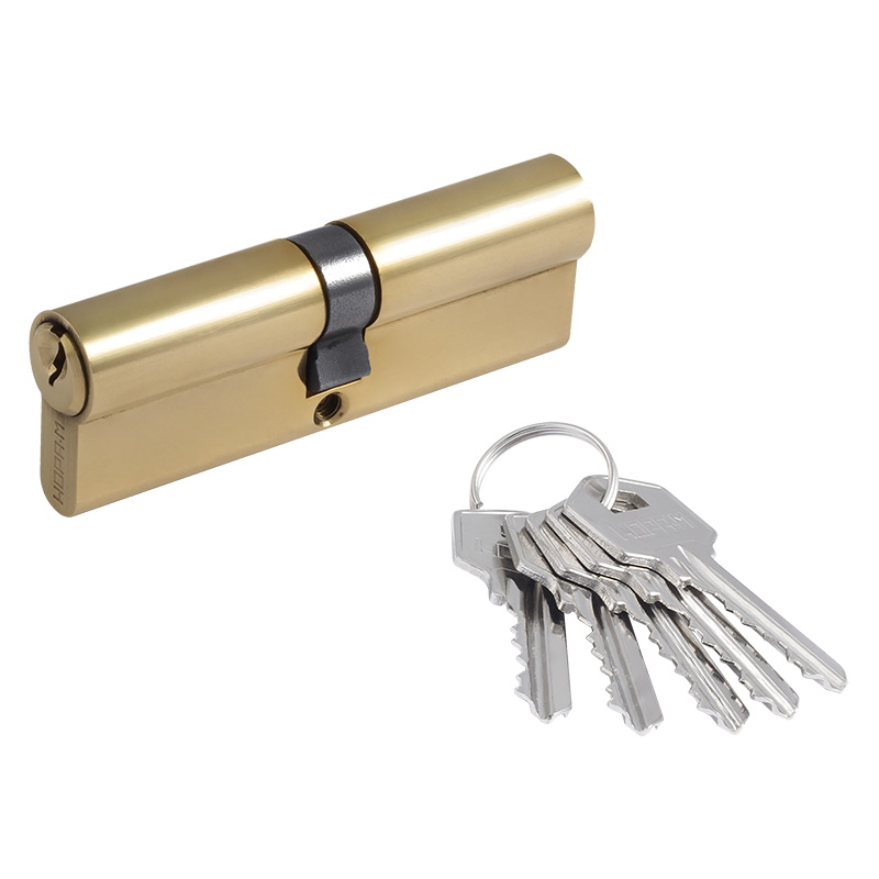 Цилиндр замка Нора-М , личинка ЛУ, золото - латунный цилиндр для межкомнатных и входных дверей.Преимущества 5 пинов, в комплекте 5 английских ключей из латуни Цилиндр имеет штифт из закаленной стали против высверливания Ресурс работы более 100.000 циклов Длину цилиндра подбирайте исходя из толщины двери, с небольшим запасом под накладку