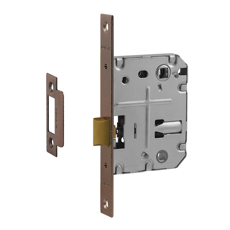 Защелка сантехническая Нора-М , с пластиковым ригелем, старая медь - предназначена для установки в межкомнатные деревянные двери.Преимущества Комплектуется с дверной ручкой и накладкой под фиксатор Подходит для установки на двери левого и правого открывания Ригель механизма выполнен из ударопрочного пластика Лицевая и ответная планки выполнены из стали, имеют гальваническое многослойное покрытие Стальной корпус имеет защитное антикоррозийное покрытие Главным отличием от механизмов со стальным ригелем является бесшумная работа механизма Цвет ригеля совпадает с цветом ответной планки Ресурс работы - не менее 350 000 циклов открывания/закрывания