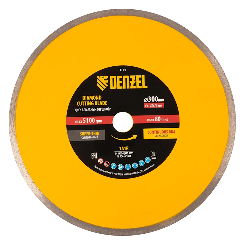 Диск алмазный сплошной Denzel , супертонкий, 300 х 25,4 мм, горячее прессование, мокрое резание 73164