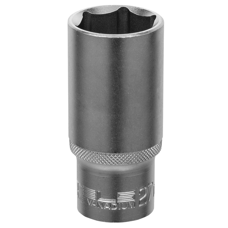 Удлиненная 6-гранная торцевая головка Stels из стали CrV, размером 27 мм, под квадрат 1/2", предназначена для монтажа и демонтажа болтовых соединений. Удлиненный профиль позволяет работать в труднодоступных местах, а также закручивать и откручивать крепежи на высоких шпильках.Преимущества Прочность и долговечность — головка изготовлена из износостойкой хромованадиевой стали Устойчивость к нагрузкам — твердость материала рабочей части составляет 42 HRC Аккуратная работа — динамический профиль обеспечивает увеличенную площадь контакта с деталью, сводя к минимуму риск повреждения граней болтов, гаек и других крепежей Антикоррозионная защита — на головку нанесено матовое хромовое покрытие Комфортная эксплуатация — благодаря специальным насечкам головка не выскальзывает даже из замасленных рук