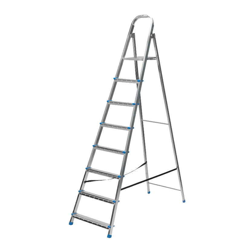 Стальная оцинкованная стремянка Сибртех с 8 ступенями позволяет выполнять ремонтные и садовые работы, для которых требуется доступ к предметам на высоте. Рама и ступени из стального профиля выдерживают вес до 120 кг. Расстояние от опорной поверхности до площадки составляет 166 см, при среднем росте пользователя 170 см рабочая высота лестницы — 366 см. Необходимо соблюдать технику безопасности: размещать стремянку только на ровной плоскости и не использовать ее для работы с дрелью, шуруповертом и другим электроинструментом.Преимущества Простая установка — на верхней площадке предусмотрены специальные зацепы для фиксации стремянки в разложенном состоянии Антикоррозийная защита — стальная поверхность оцинкована, что увеличивает срок службы лестницы Безопасное использование — рифленые ступени обеспечивают противоскользящий эффект, защитные накладки на углах исключают случайное травмирование пользователя Аккуратное использование — ножки с противоскользящими накладками не повреждают напольное покрытие Удобная эксплуатация — высокая дуга безопасности позволяет занять устойчивое положение