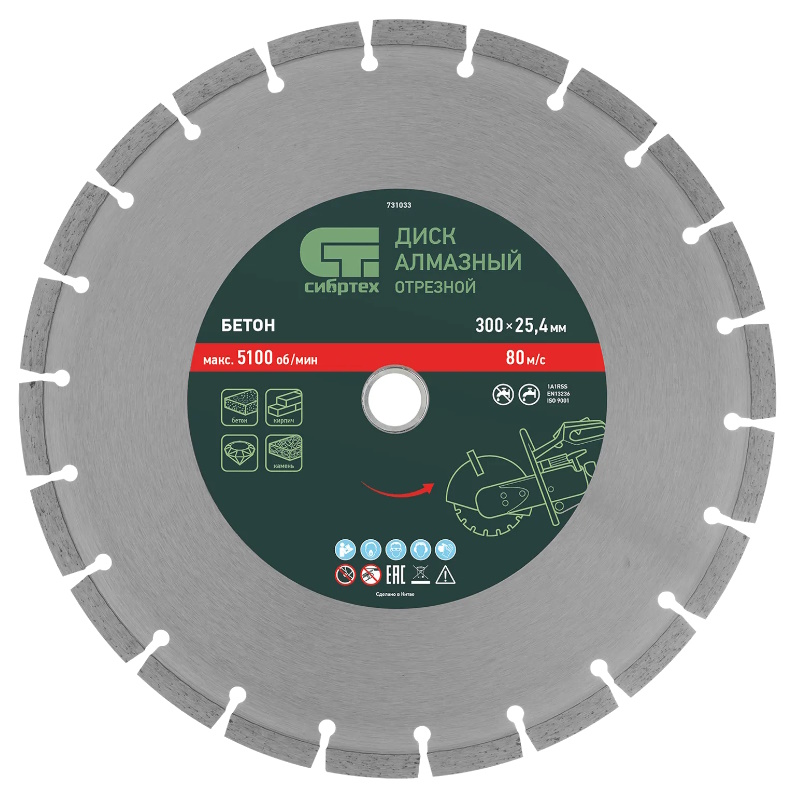 Диск алмазный Сибртех , ф300 х 25,4 мм, сухой/мокрый рез "Бетон" 731033