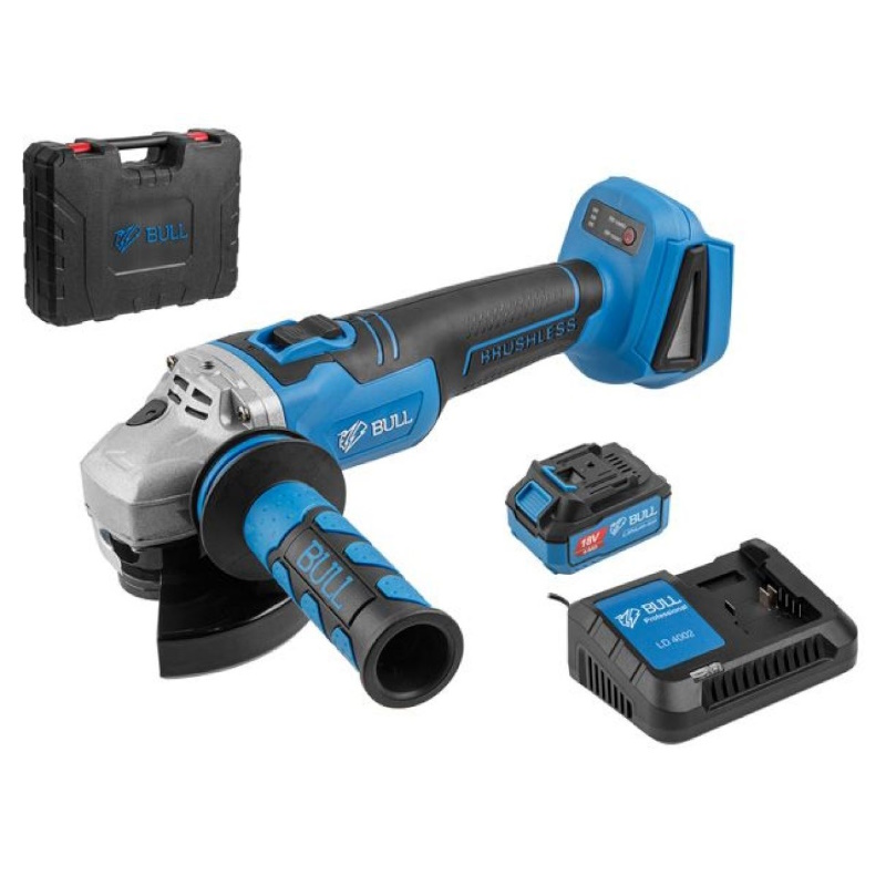 Аккумуляторная углошлифмашина Bull - это шлифовальная машина с надёжным бесщёточным двигателем, которая работает от аккумулятора.Преимущества: Оснащена бесщеточным двигателем, что продлевает срок службы как самого инструмента, так и аккумуляторов в 2 раза; снижает энергопотребление на 50%; делает инструмент компактнее, а работу продуктивнее; исключает необходимость замены угольных щеток Имеет пылезащитные фильтры, способные эффективно охлаждать плату управления. Кроме того, фильтры препятствуют проникновению мелкоабразивной металлической стружки в двигатель Двухуровневая регулировка оборотов для выполнения работы по обработке разных поверхностей, не повреждая их Интеллектуальная плата управления обеспечивает защиту от перегрузки, перегрева и заклинивания оснастки Двигатель установлен на надежных подшипниках, которые оснащены лабиринтным уплотнением Быстрозажимной кожух и антивибрационная рукоятка с возможностью установки в 3 позициях для удобства работы Малый вес и низкий уровень шума для максимального комфорта использования