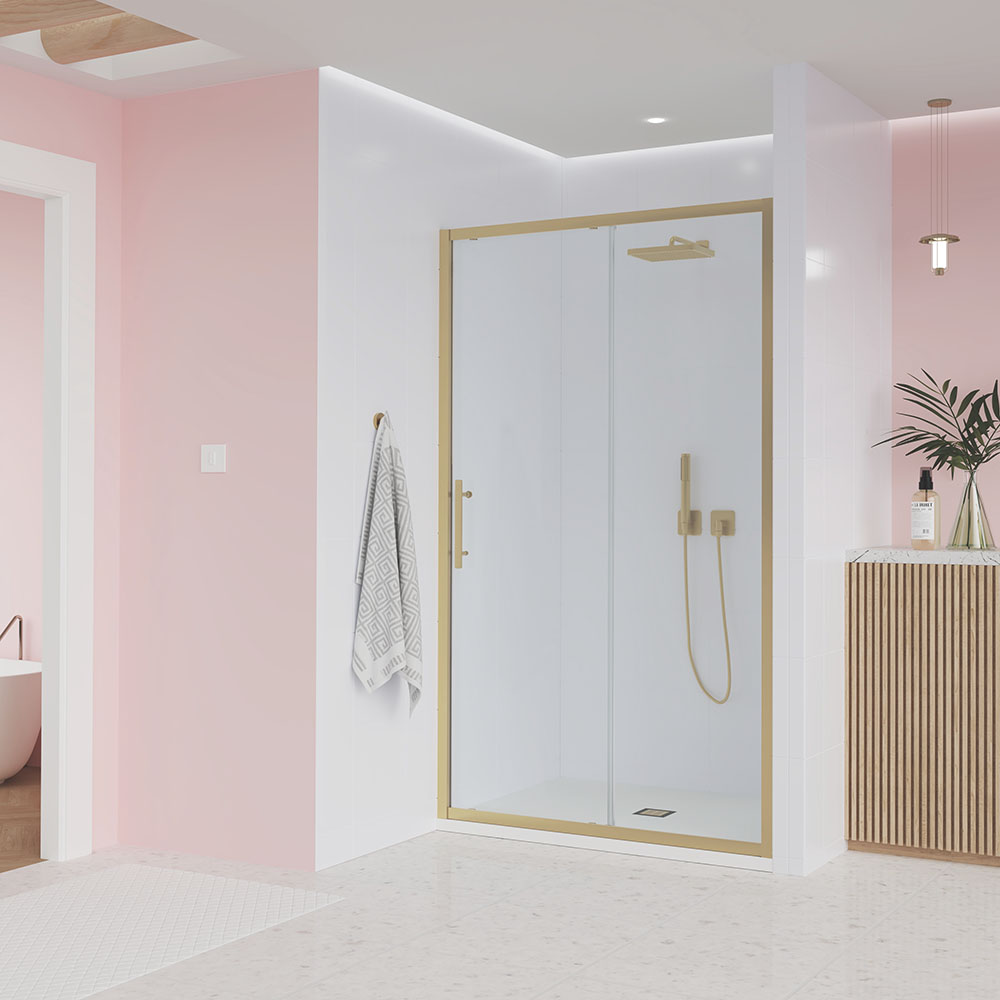 - Модель: Evo 140x195 E1-G-140-01-C9 стекло прозрачное, профиль золото брашированное