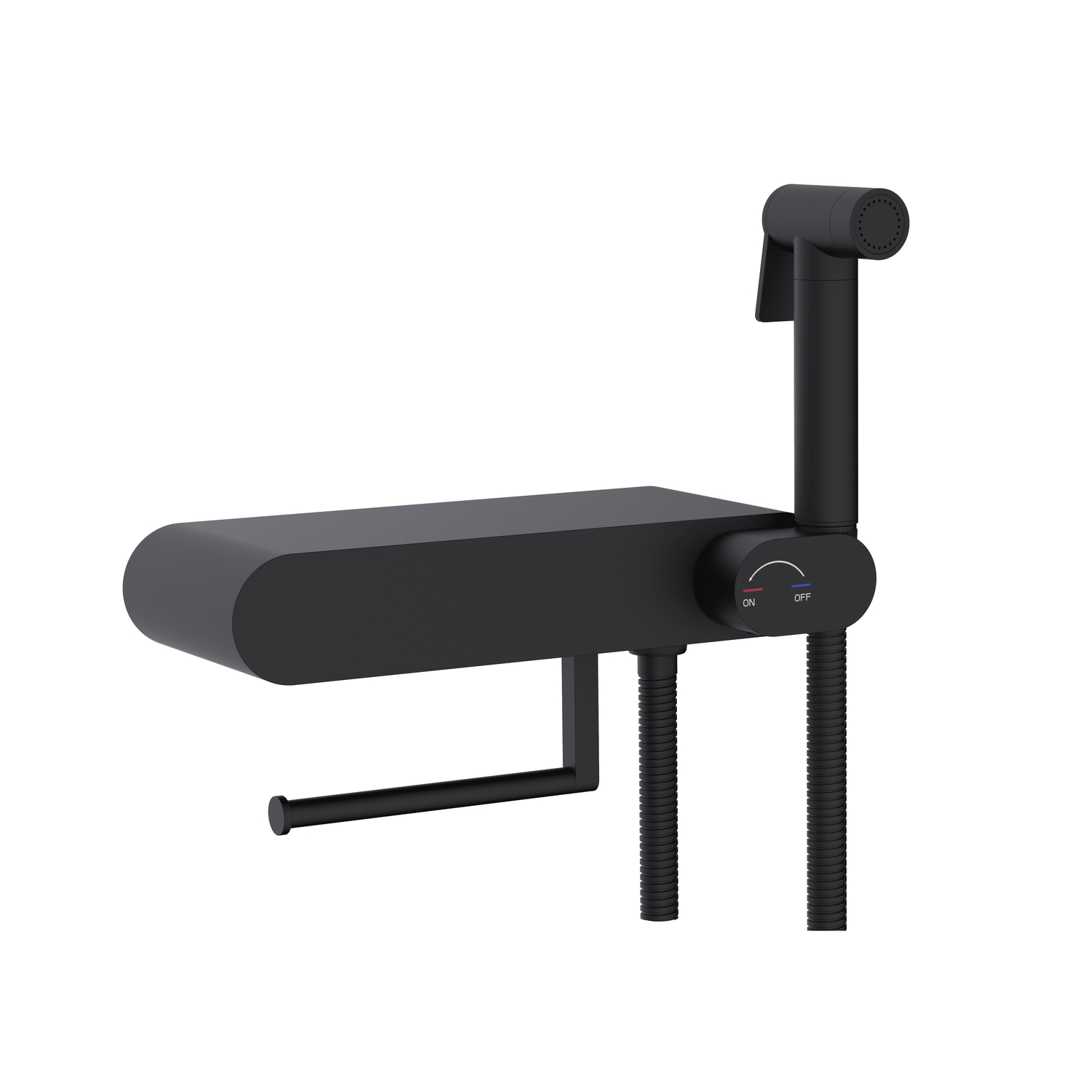 Гигиенический душ со смесителем для унитаза RGW Shower Panels SP-222B 581408222-04 черный, с полкой и бумагодержателем