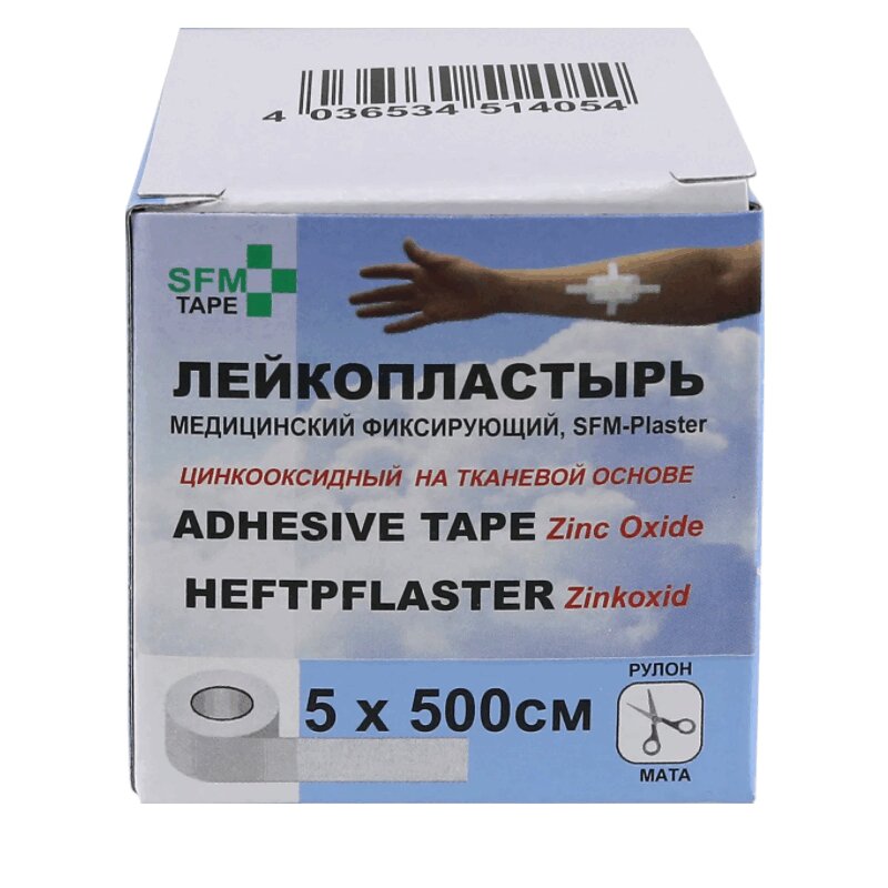 SFM Plaster Лейкопластырь фиксирующий на тканевой основе 5 см х 500 см 1 шт СФМ Госпиталь Продактс