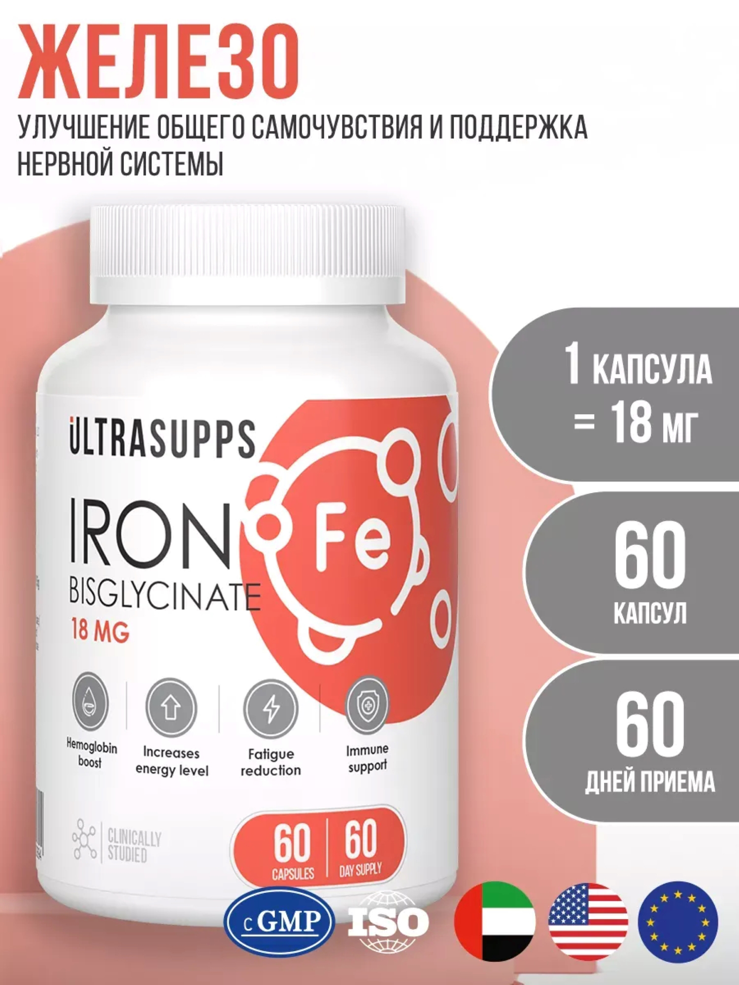 Железо UltraSupps, 60 капсул, Белый (размер: One size)