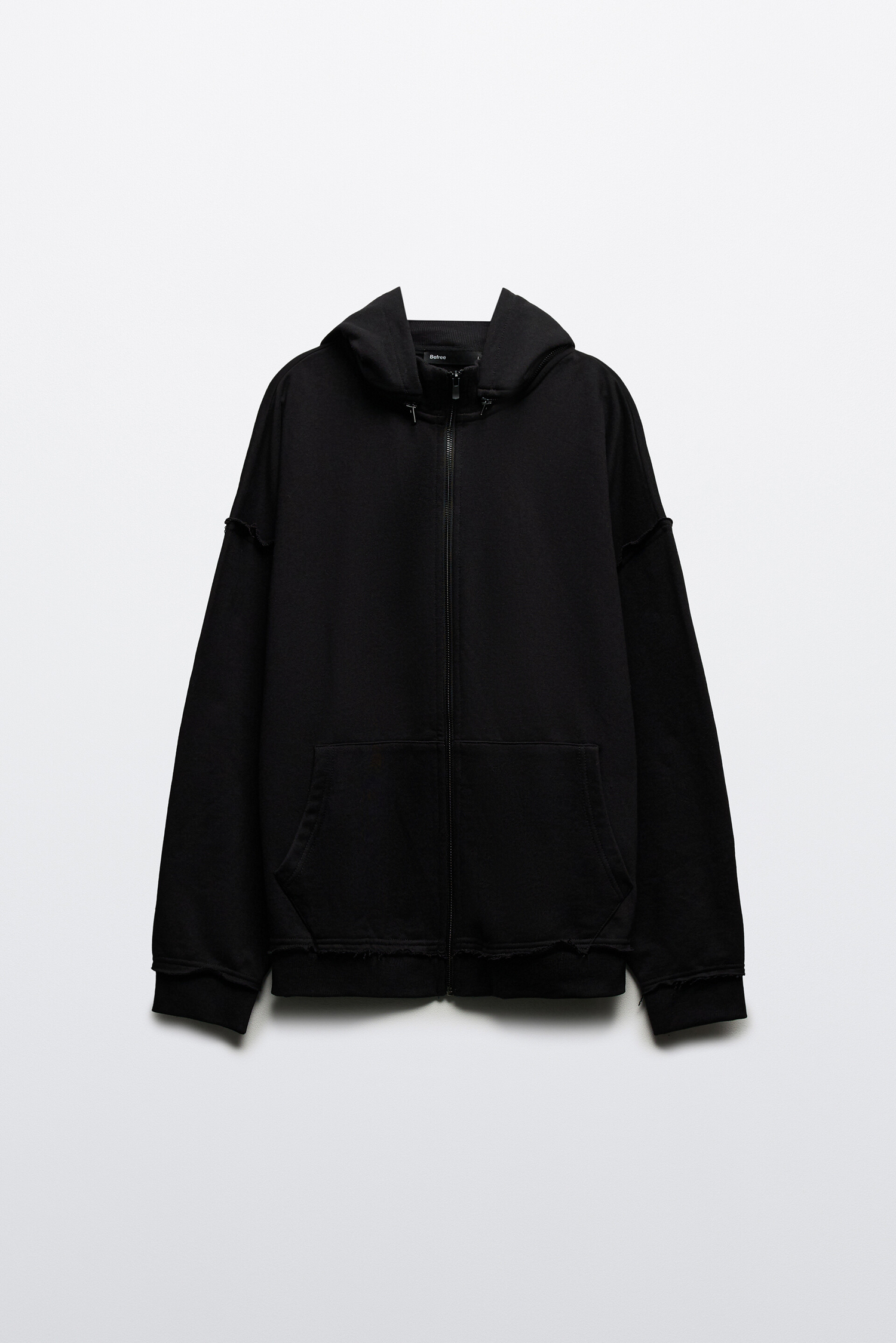 - Объемный капюшон на молнии. Боковые накладные карманы-кенгуру без застежки. Длинные свободные рукава с широкими эластичными манжетами в рубчик и спущенной линией плеча. Присборенный нижний край на эластичной резинке в рубчик. Застежка на молнию по всей длине. Декоративные необработанные швы на манжетах, линии плеч и по нижнему краю