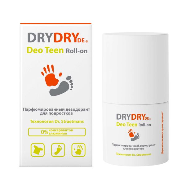 Парфюмированный дезодорант для подростков Dry Dry Deo Teen, 50 млDry Dry Deo Teen предназначен специально для подростков. Dermosoft Decalact deo – это активный ингредиент натурального происхождения с антибактериальными свойствами дезодорирующего действия, разработанный по технологии Dr. Straetmans. Он позволяет средству быстро впитываться, препятствует размножению бактерий и обеспечивает ощущение свежести и комфорта в течение всего дня. Состав: aqua, alcohol denat (10% об.) (t-butyl alcohol, denatonium benzoate), glycerin, triethyl citrate, distarch phosphate, isoamyl laurate, methylpropanediol, plyglyceril-10 laurate, sodium caproyl/lauroyl lactylate, acrylates/c10-30 alkyl acrylate crosspolymer, caprylyl glycol, parfum, citric acid, phenylpropanol, aloe barbadensis leaf extract, salvia officinalis oil, soduim hydroxide. Дезодорант содержит спирт, поэтому не рекомендуется наносить его в день эпиляции или на поврежденную кожу. Применение: Dry Dry Deo Teen допустимо наносить ежедневно на очищенную сухую кожу в любое время суток. не пачкает одежду, не оставляет ощущения липкоститолько для наружного применениярекомендуется для подростков (12-18 лет)не имеет ограничений по частоте применения.