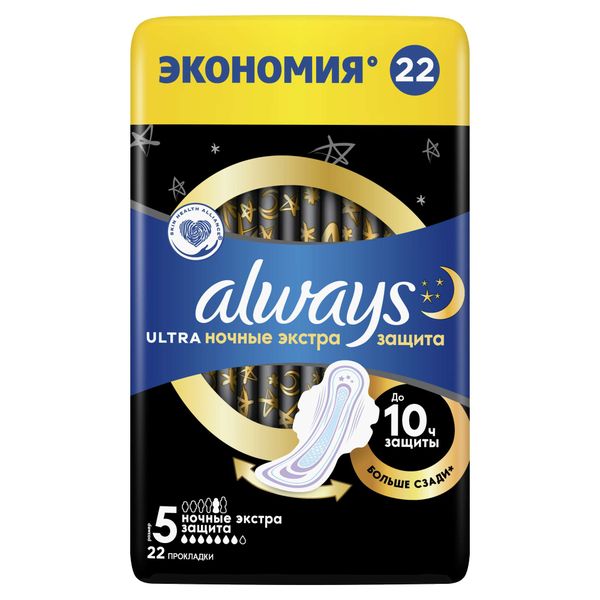Наслаждайтесь спокойным сном благодаря тройной защите: гигиенические прокладки ALWAYS Ultra Secure Night (ночные экстра защита) с крылышками обеспечивают тройную защиту от протеканий и необходимости менять прокладку ночью. Обеспечьте себе наилучшую защиту с помощью Always My fit — специальной системы определения размера, которая помогает правильно подобрать прокладку на основании количества выделений и размера трусиков - Увеличенная на 60% площадь задней части, по сравнению с Ultra Light (Размер 1), для дополнительной защиты в ночное время - Технология «Защитные барьеры» удерживает жидкость, предотвращая протекания - Система «Сразу сухо» впитывает жидкость за считаные секунды - Технология «Блок запаха» нейтрализует неприятные запахи - Гигиенические прокладки не раздражают кожу (одобрено Ассоциацией здоровья кожи Skin Health Alliance) - Крылышки помогают удерживать прокладку на месте для надежной защиты и ощущения комфорта.