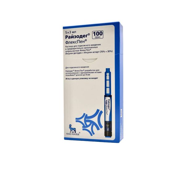 Райзодег раствор для п/к введ. картридж в шриц-ручках ФлексПен 100ЕД/мл 3мл 5шт Ново Нордиск А/С/Ново Нордиск ООО