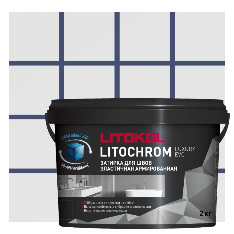**Затирка Litokol Litochrom Luxury Evo** — эластичная армированная полимерно-цементная затирка с системой 3D-армирования FIBER GUARD PRO для заполнения межплиточных швов шириной 1–10 мм.