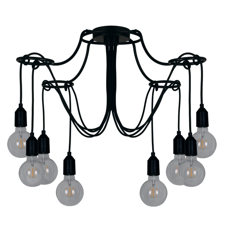**Люстра потолочная Kreaforta Huron** создана для освещения помещений площадью до 24 м². Модель с восемью подвесами обеспечивает равномерное и мягкое освещение, подходящее для гостиных, спален или холлов. Гибкие текстильные шнуры позволяют менять форму и длину светильника, создавая индивидуальный дизайн. В качестве источника света рекомендуется использовать светодиодные лампы, максимальная мощность 60 Вт.