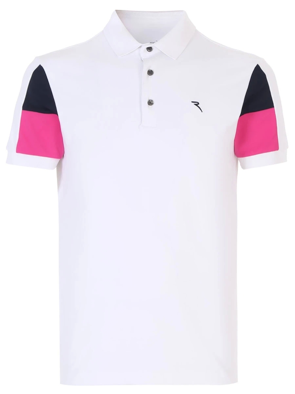 -Детали: полуприлегающий силуэт, яркие короткие рукава, отложной воротник, застежка на пуговицы, вышитый логотип на груди.