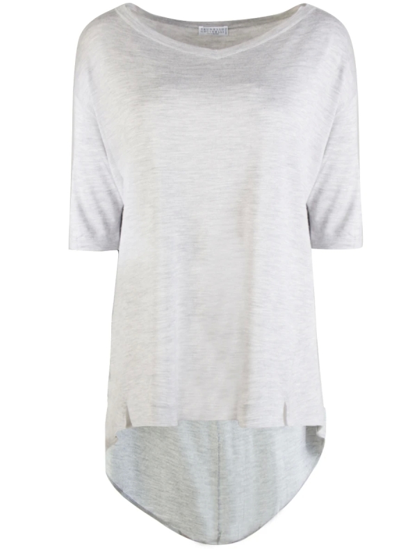 -Серая футболка из трикотажа купажированного состава от BRUNELLO CUCINELLI.