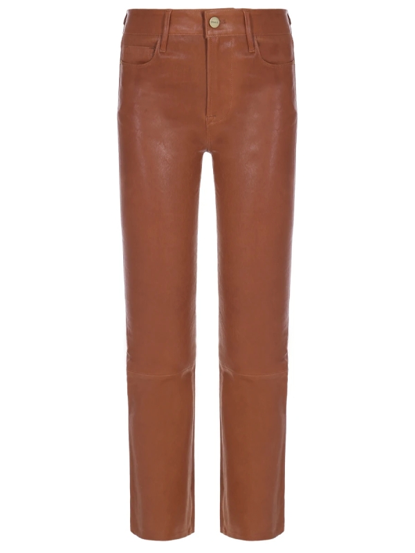-Укороченные брюки из кожи карамельного цвета от FRAME.
