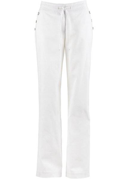Втачные карманы по бокам, карманы с кантом сзади. Пояс с протянутой лентой для завязывания. Длина по внутреннему шву ок. 81 см (разм. 42). Машинная стирка.