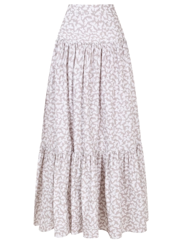 -Бежевая юбка-миди из хлопка с принтом от OLOLOL.