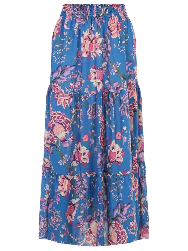 -Синяя с цветочным принтом юбка-макси из легкого дышащего льна от ANJUNA.