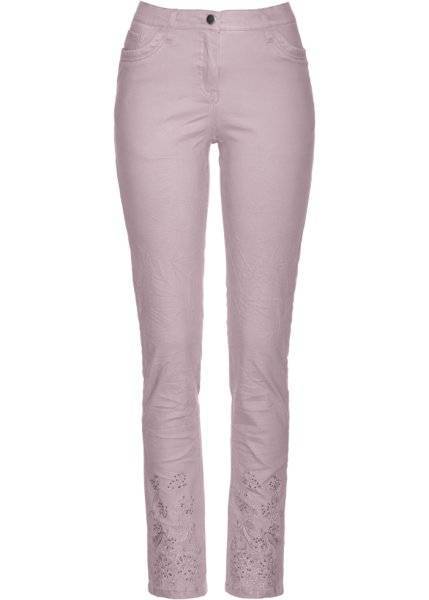 Стрейтчевые брюки со стразами и вышивкой (розовый матовый) bonprix для женщин